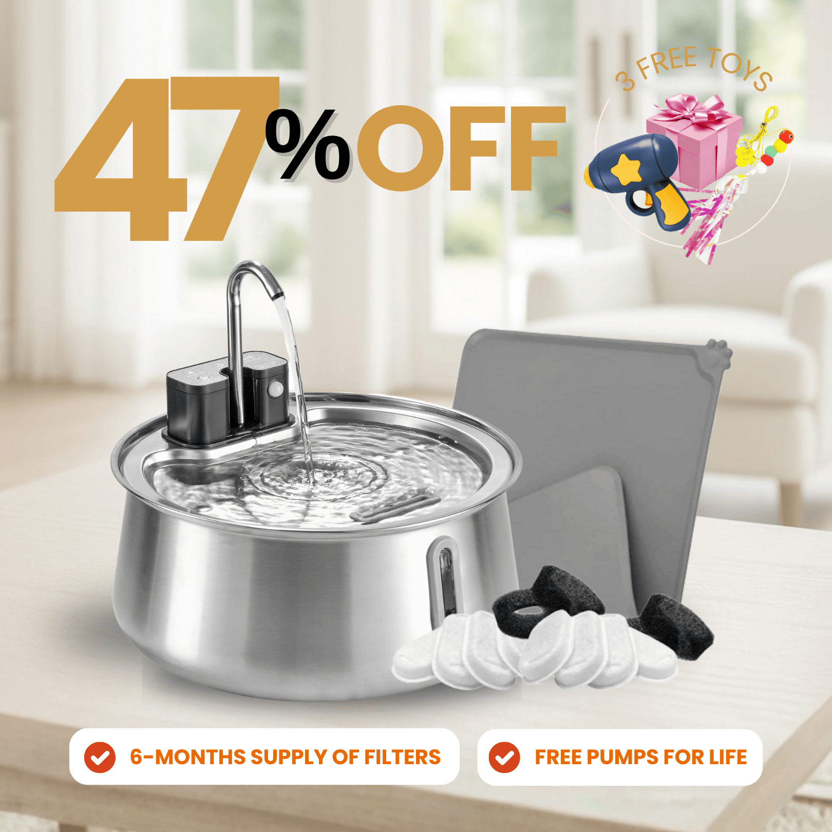 • Stainless Steel Replacement Filters Keeps your cat's water clean