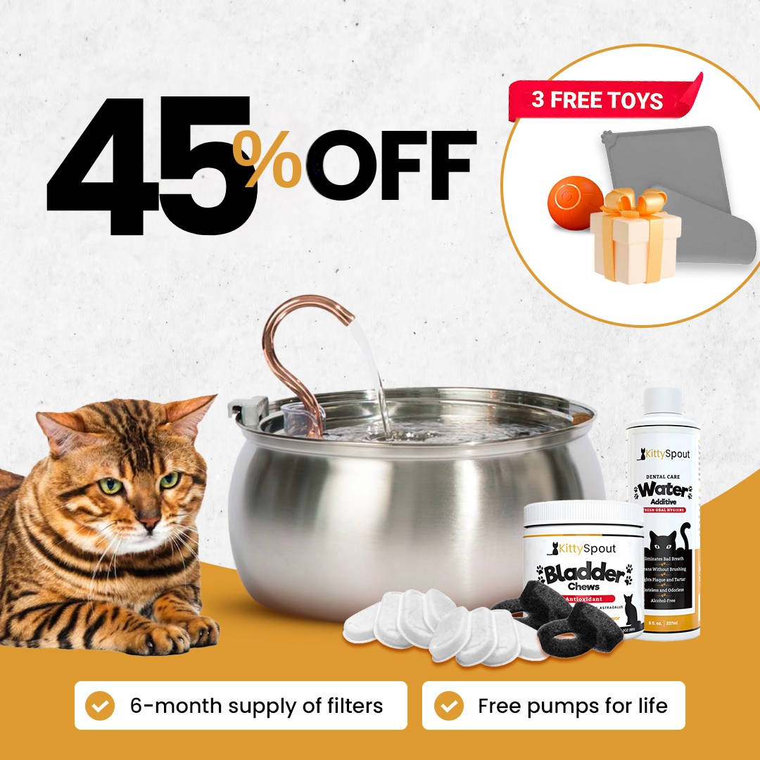 The KittySpout improves your cat's health & happiness by providing them with fresh, filtered water all day long. Loved by thousands of busy cat parents for it's spout-like design and easy use.