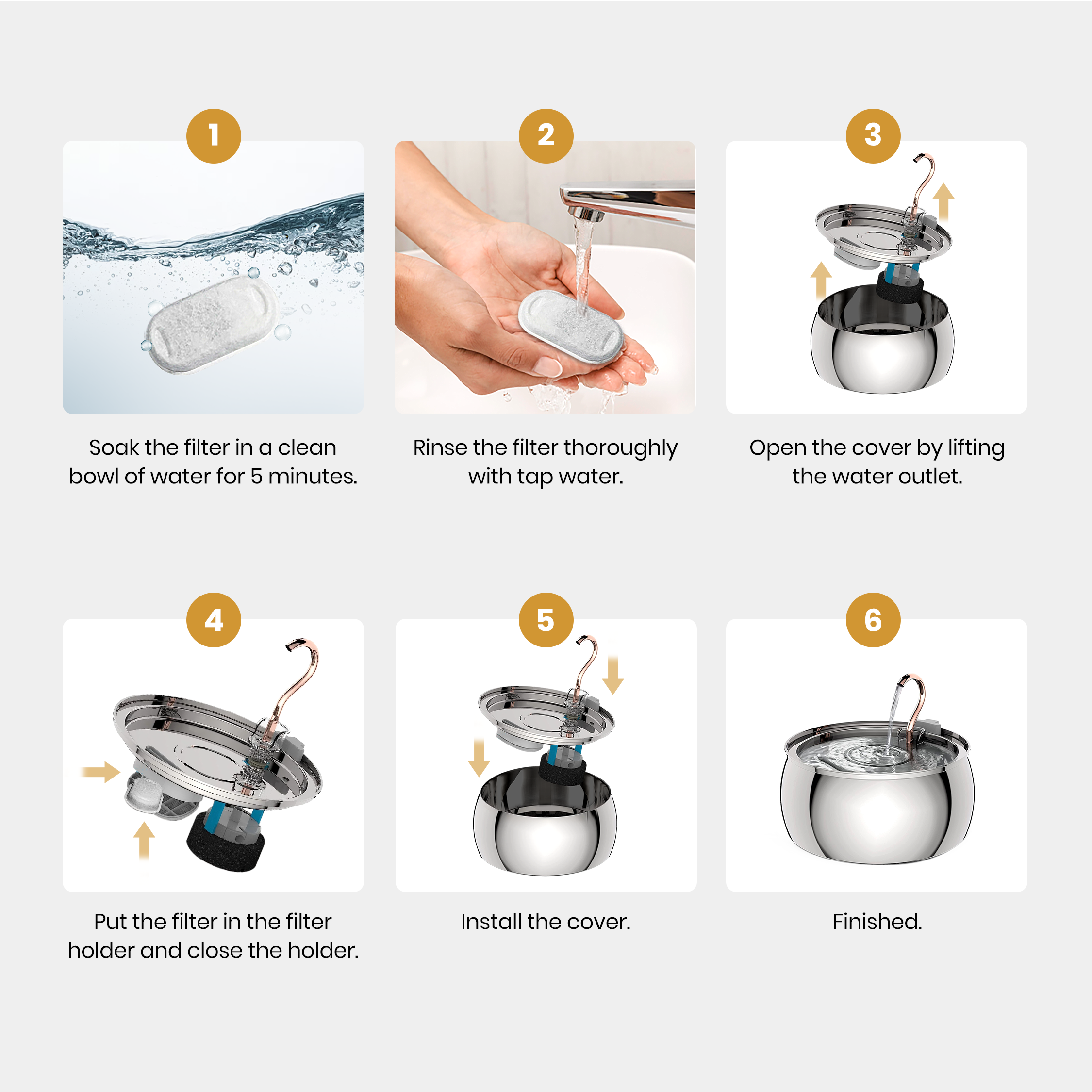 We recommend changing the filter every 2 weeks to ensure fresh, clean water.