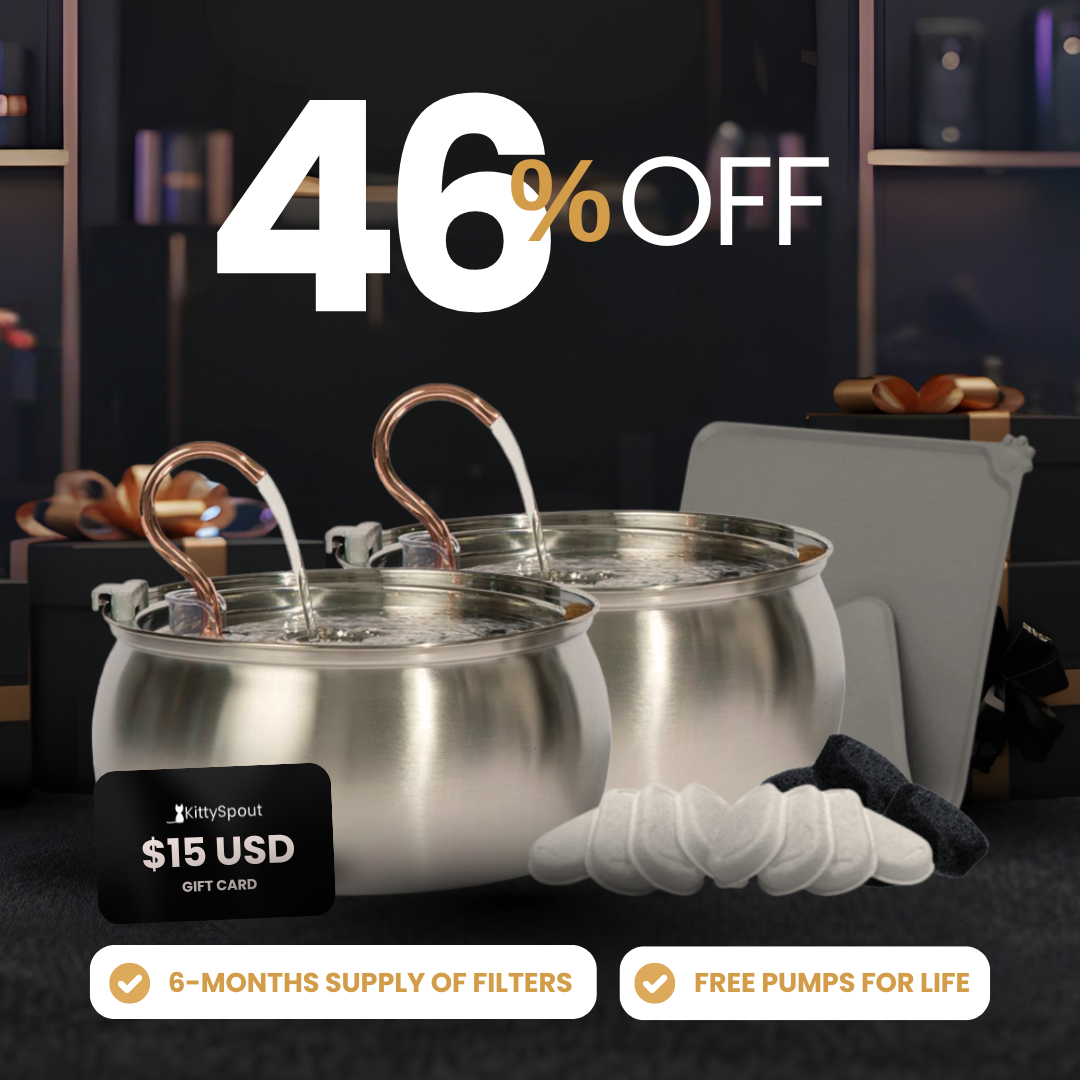 The Big Cat Family Bundle improves your cat's health & happiness by providing them with fresh, filtered water all day long. Loved by thousands of busy cat parents for it's spout-like design and easy use.