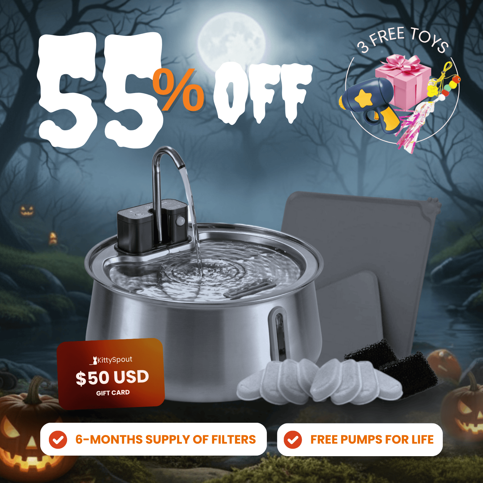 Just send us an email at support@kittyspout.com and we will make sure you and your cat are taken care of!