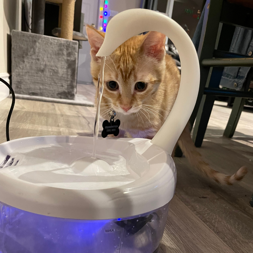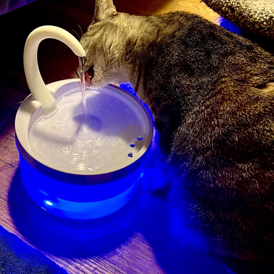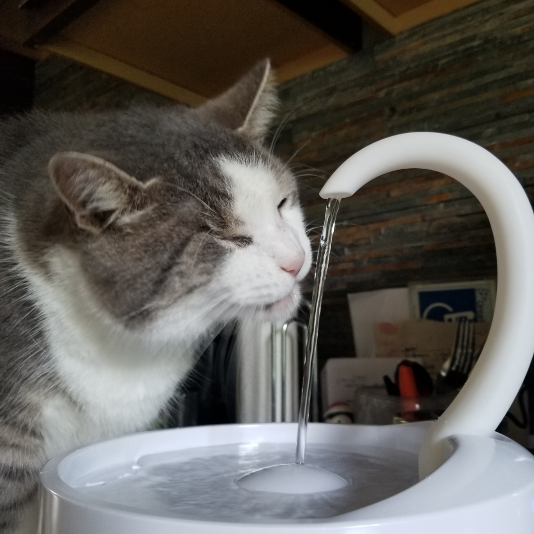 The only water fountain your cat will ever need. Completely silent and eliminates the need to turn on the tap, while providing your cat with fresh, filtered water all day long.