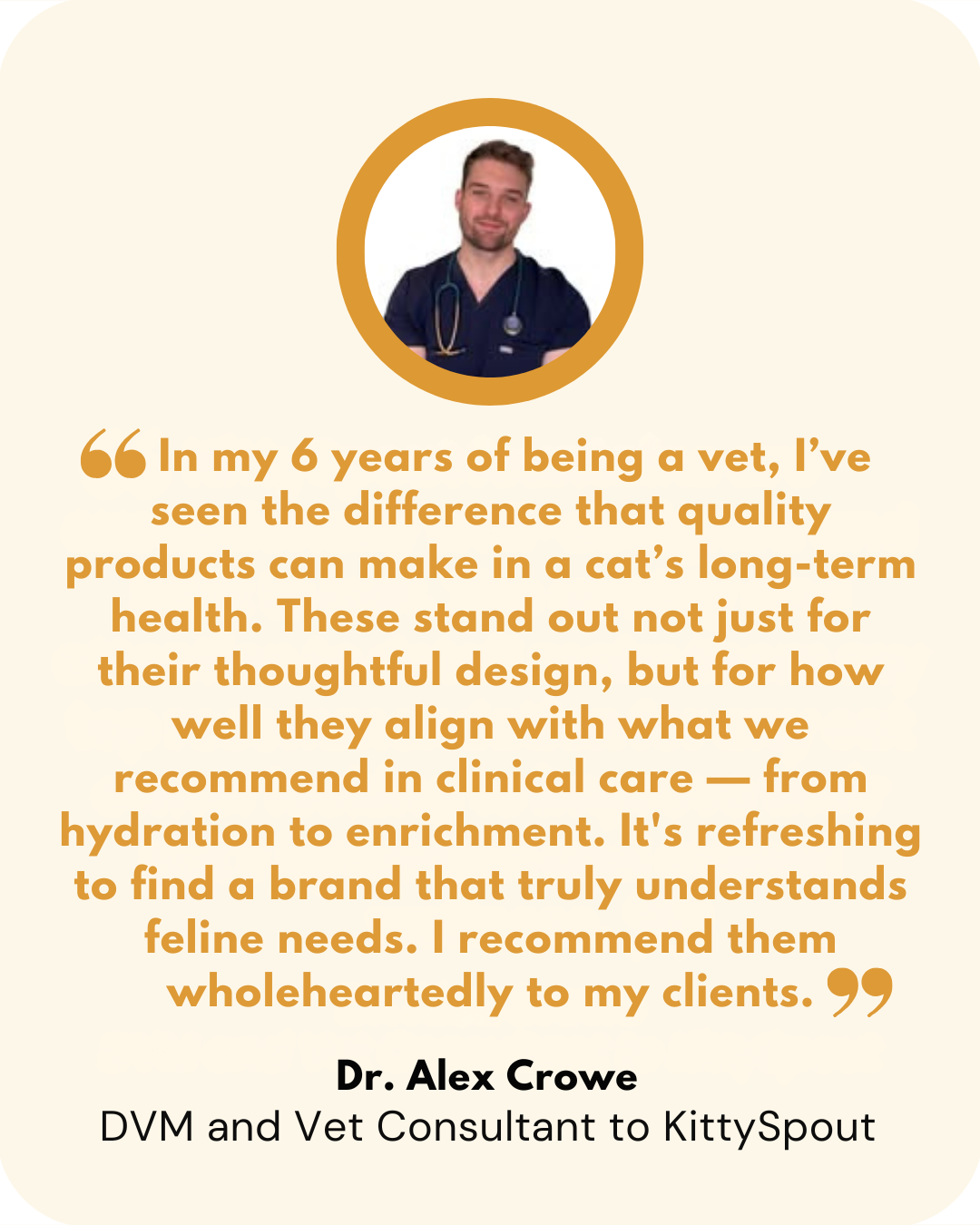 That's why veterinarians recommend the KittySpout. It entices your cat to drink more water by automatically giving them fresh, clean water all day long. Which is especially effective if your cat prefers to eat dry food.